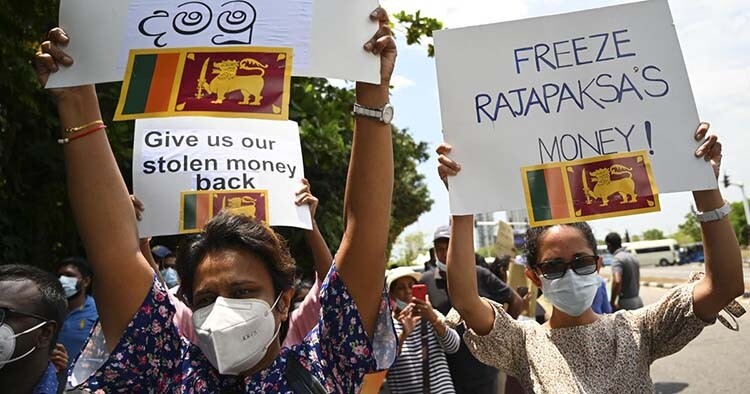 ਦੰੰਗਿਿਆਂ ਕਾਰਨ ਦੇਸ਼ ਛੱੱਡਣ ਤੋਂ ਬਾਾਅਦ, ਰਾਾਜਪਕਸ਼ਾ ਨੇ ਦਾਾਅਵਾ ਕੀਤਾ ਕਿ ਅੰਤਰਰਾਸ਼ਟਰੀ ਮੁਦਰਾ ਕੋਸ਼ (ਆਈਐੱੱਮਐੱੱਫ਼) ਬੇਲਆਉਟ ਆਰਥਿਿਕ ਪਤਨ ਤੋਂ ਉਭਰਨ ਦੀ ਇਕੋ ਇੱਕ ਚੋਣ